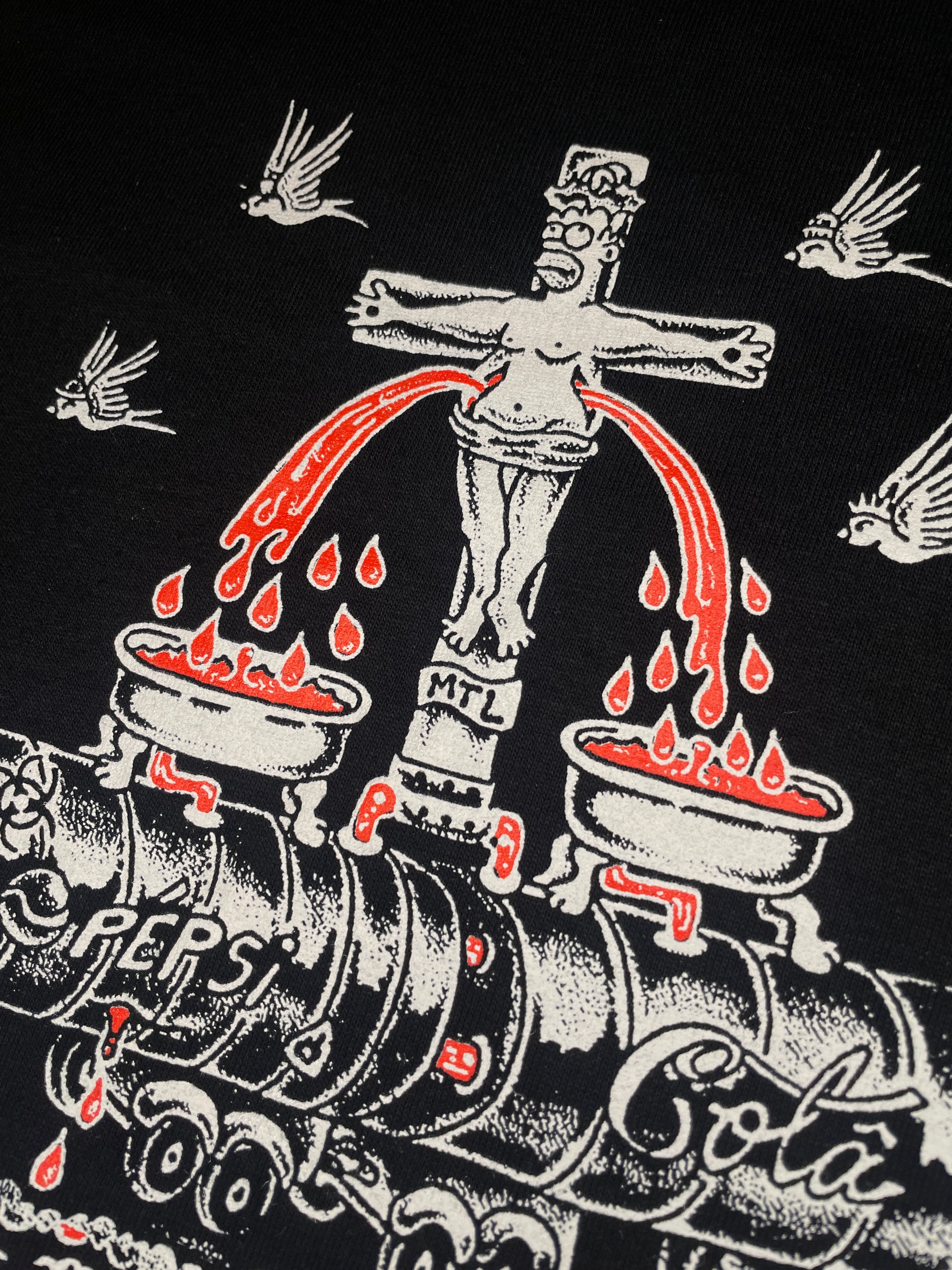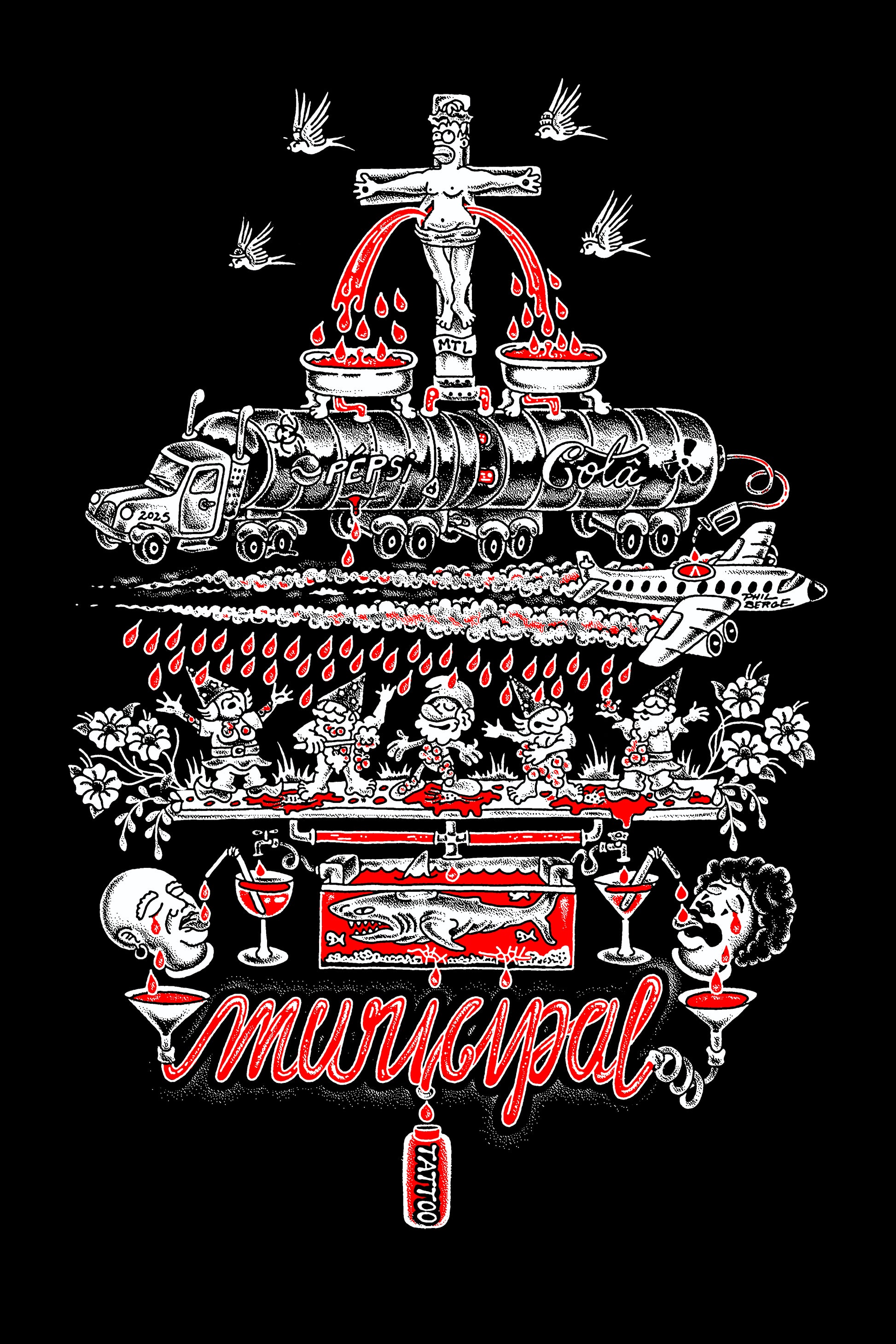 Municipal Tattoo shirt designed by Phil Berge explaining the process of tattoo ink fabrication. Printed on black Gildan shirts.